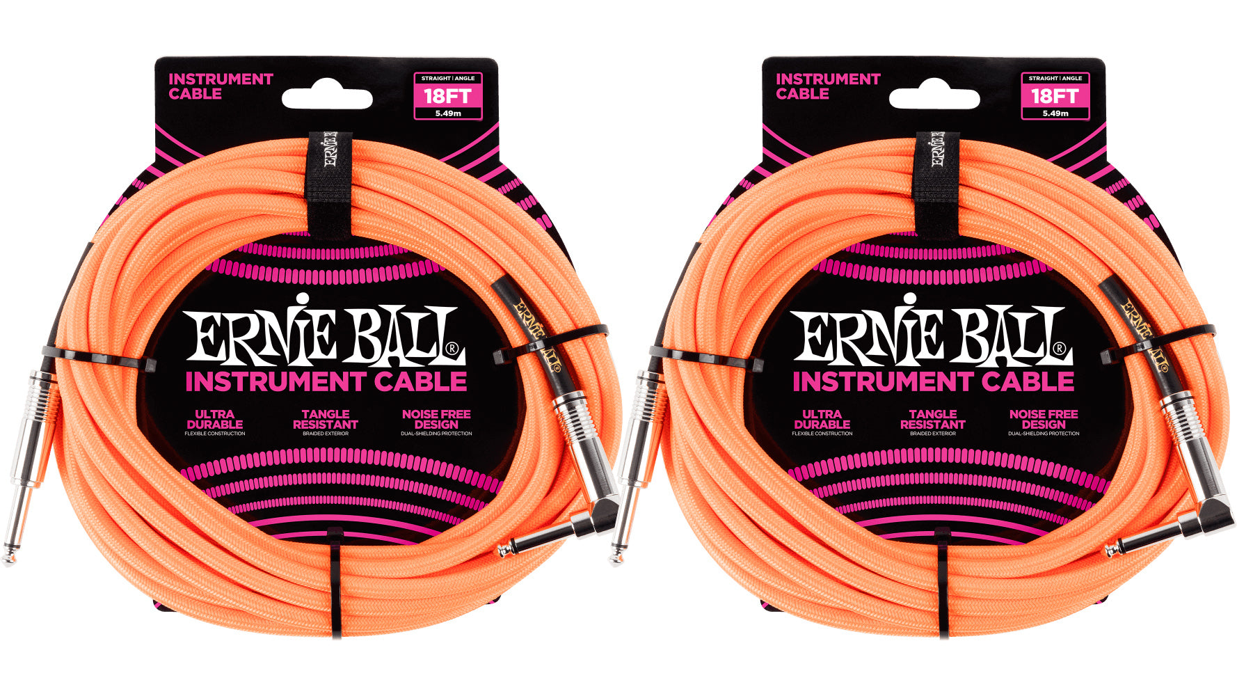 Ernie Ball 18ft Braided Straight Angle Inst Cable Neon Orange