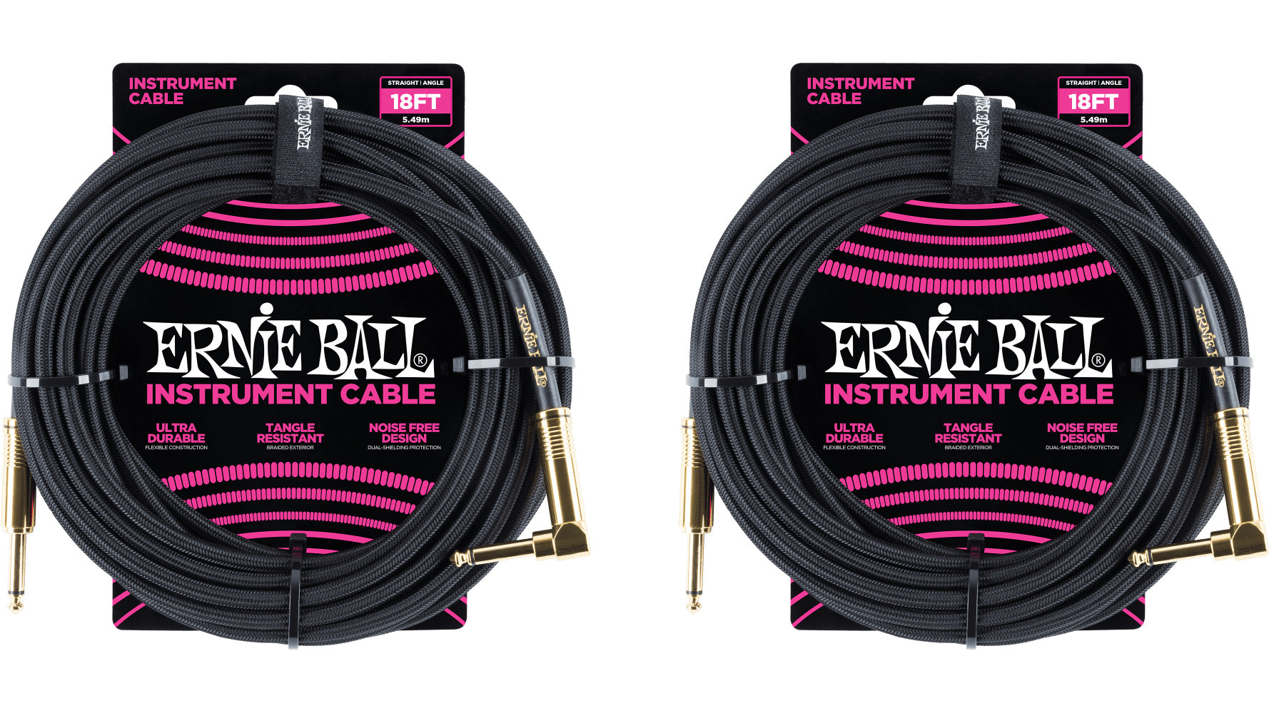 Ernie Ball instrument cables feature a high-quality design made with superior components that are built to last. Dual-conductors deliver reliably clear tone with crisp highs, tight mids, and rich harmonics. Multiple shielding materials preserve the signal with low handling noise, and the braided jacket exterior provides a tangle-resistant experience. Cable length 18ft (5.49m).