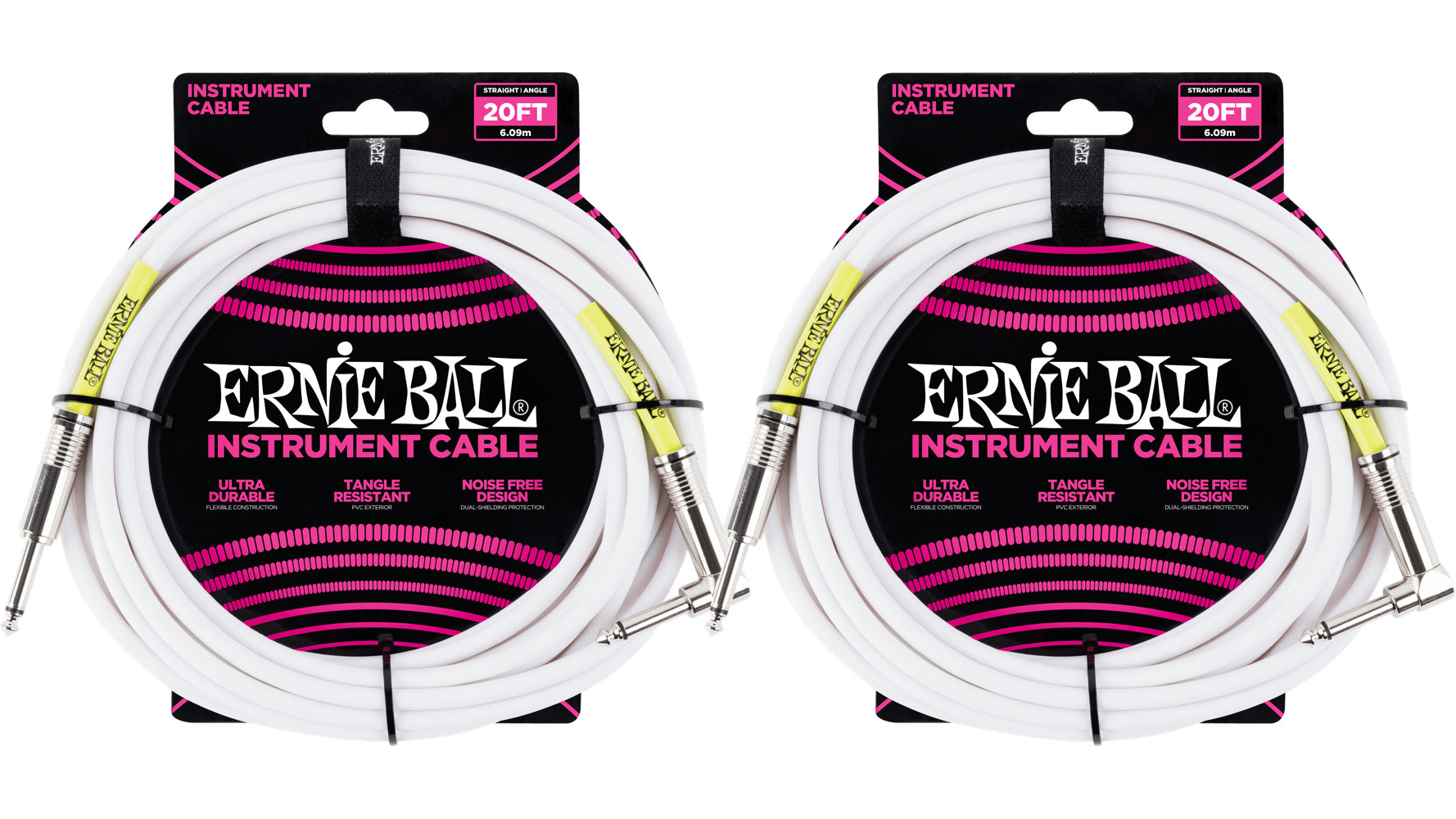 Ernie Ball instrument cables feature a high-quality design made with superior components that are built to last. Dual-conductors deliver reliably clear tone with crisp highs, tight mids, and rich harmonics. Multiple shielding materials preserve the signal with low handling noise, and the durable PVC jacket exterior ensures long-lasting performance. Cable length 20ft (6.09m).
