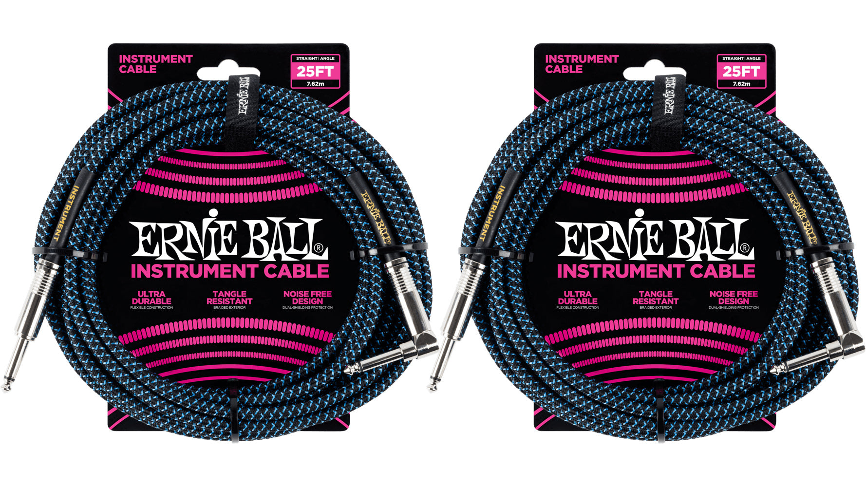 Ernie Ball instrument cables feature a high-quality design made with superior components that are built to last. Dual-conductors deliver reliably clear tone with crisp highs, tight mids, and rich harmonics. Multiple shielding materials preserve the signal with low handling noise, and the braided jacket exterior provides a tangle-resistant experience. Cable length 25ft (7.62m).