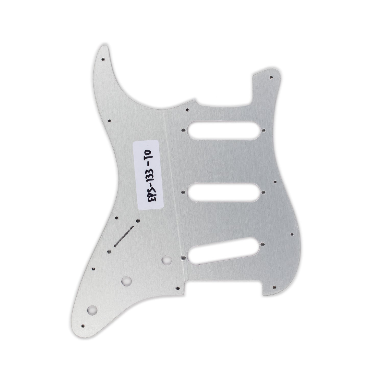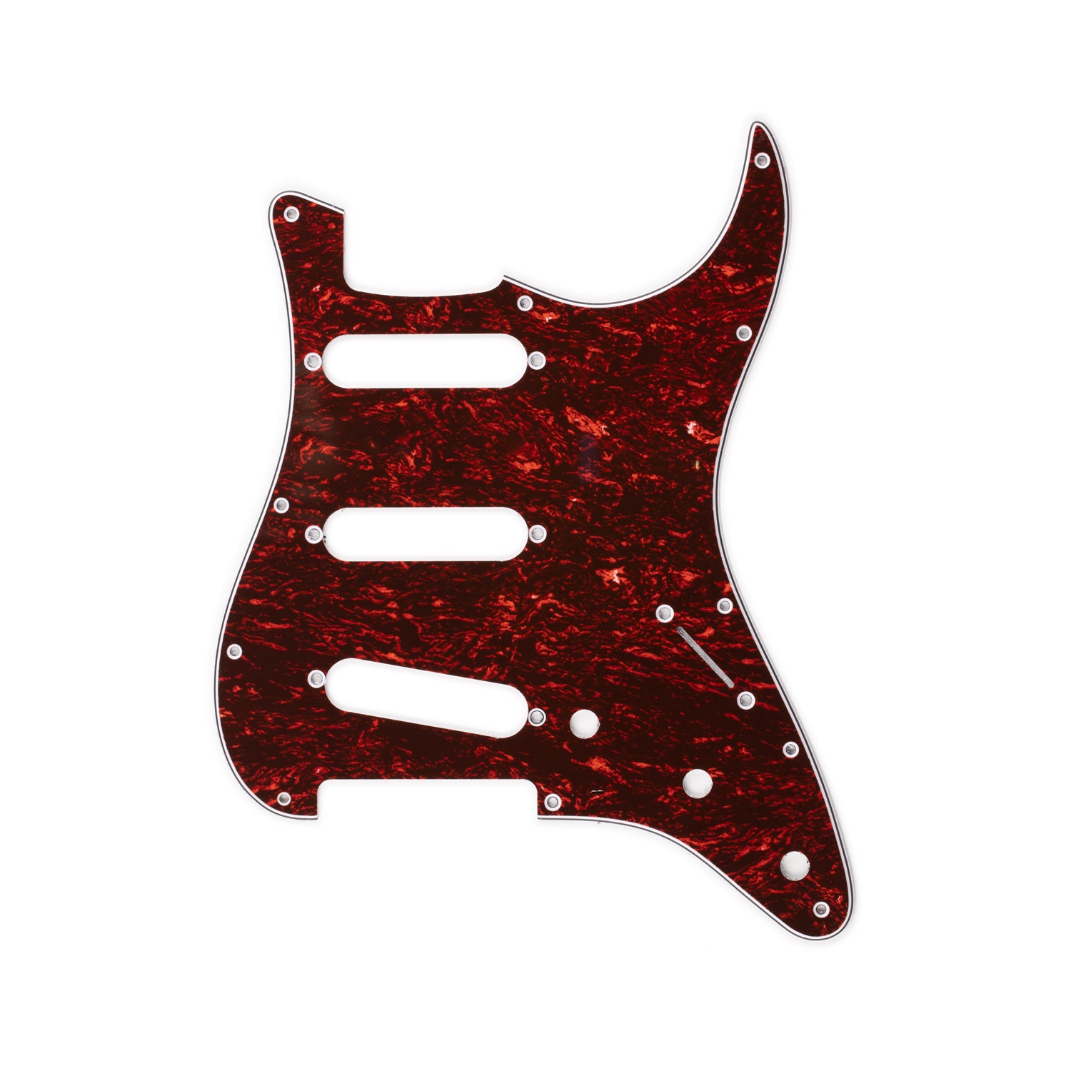 - 11 mounting-screw holes seat the pickguard firmly against the Strat top