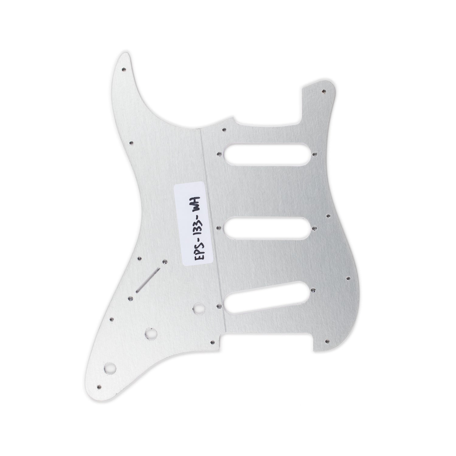 - 11 mounting-screw holes seat the pickguard firmly against the Strat top