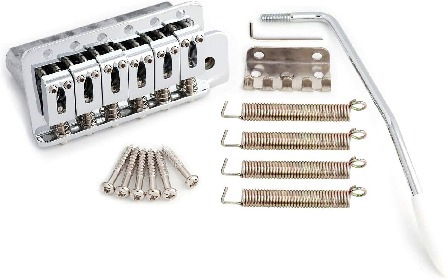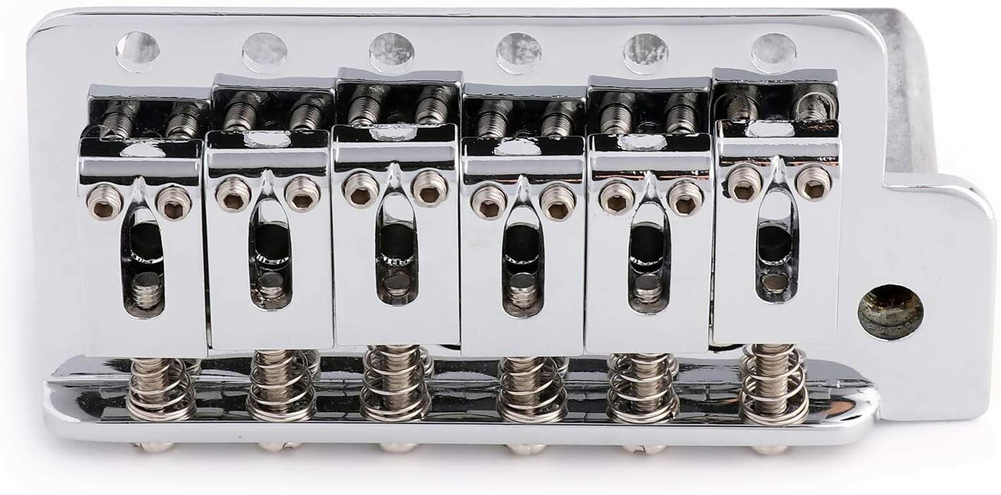 The ST Style Single Shake Tremolo System - Chrome is the perfect choice for S-Style guitars. This 6-Point Tremolo System is easy to install and highly durable. It is made of zinc alloy, making it corrosion resistant and able to withstand the test of time.