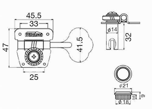 Wilkinson Open Frame Bass Tuner Tuning Peg Black Right Handed